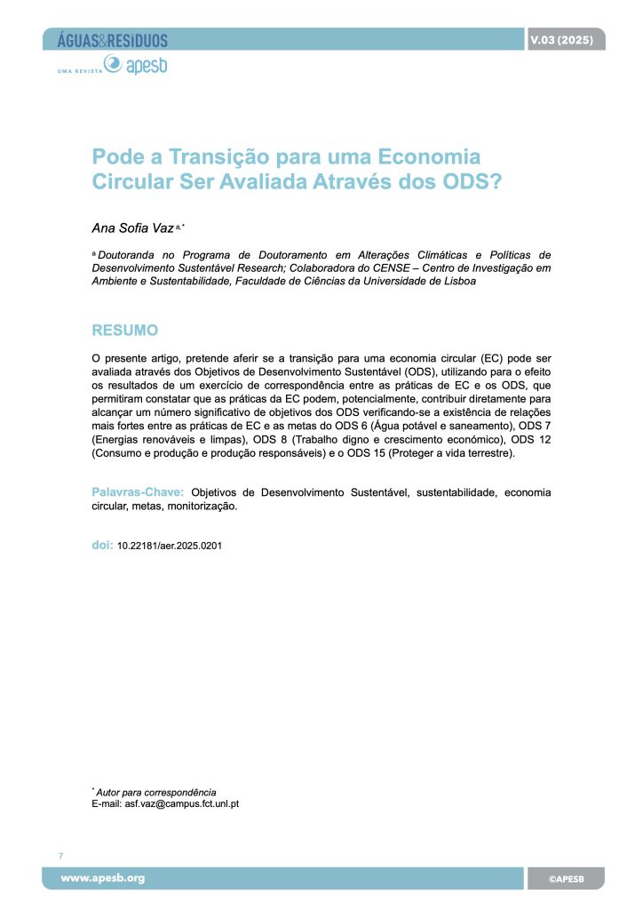 Este artigo reflete sobre a relação entre a economia circular (EC) e os Objetivos de Desenvolvimento Sustentável (ODS), onde se mostra o potencial da EC para acelerar o cumprimento de várias metas globais, através da ligação entre práticas circulares e sustentabilidade, bem como a possibilidade de utilizar os ODS para monitorizar a transição para a EC.