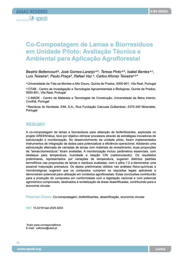 Co-Compostagem de Lamas e Biorresíduos em Unidade Piloto: Avaliação Técnica e Ambiental para Aplicação Agroflorestal