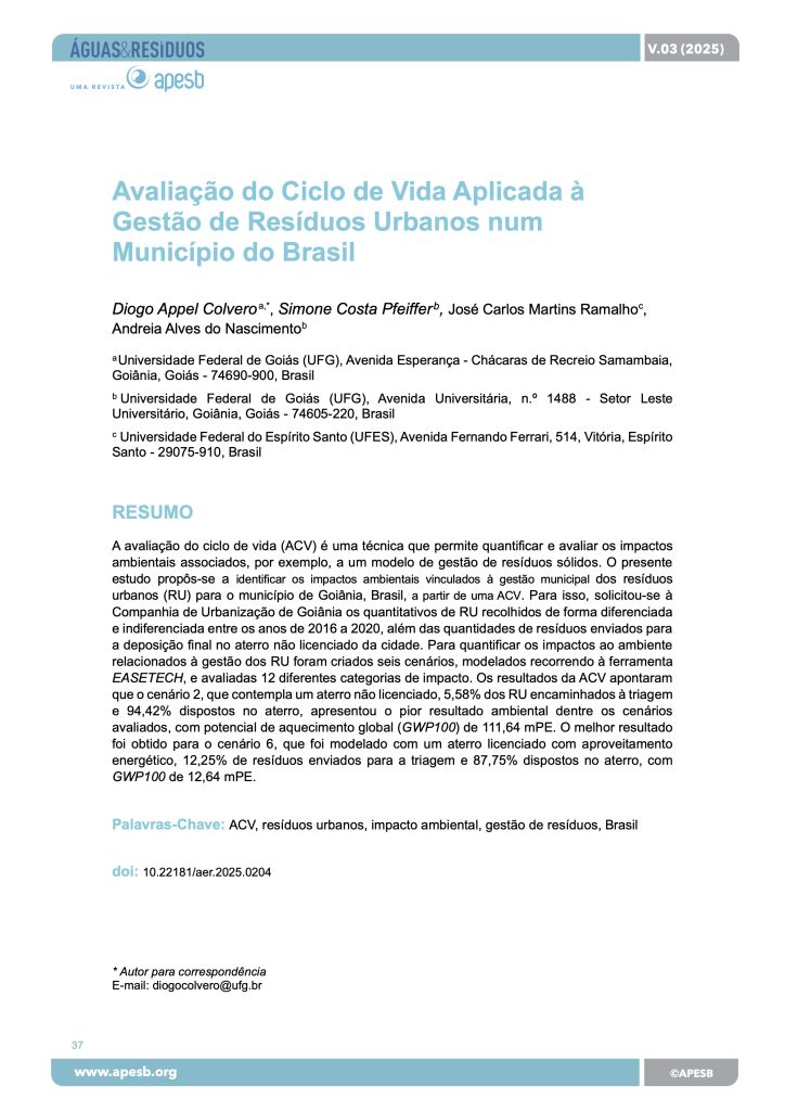 Avaliação do Ciclo de Vida Aplicada à Gestão de Resíduos Urbanos num Município do Brasil