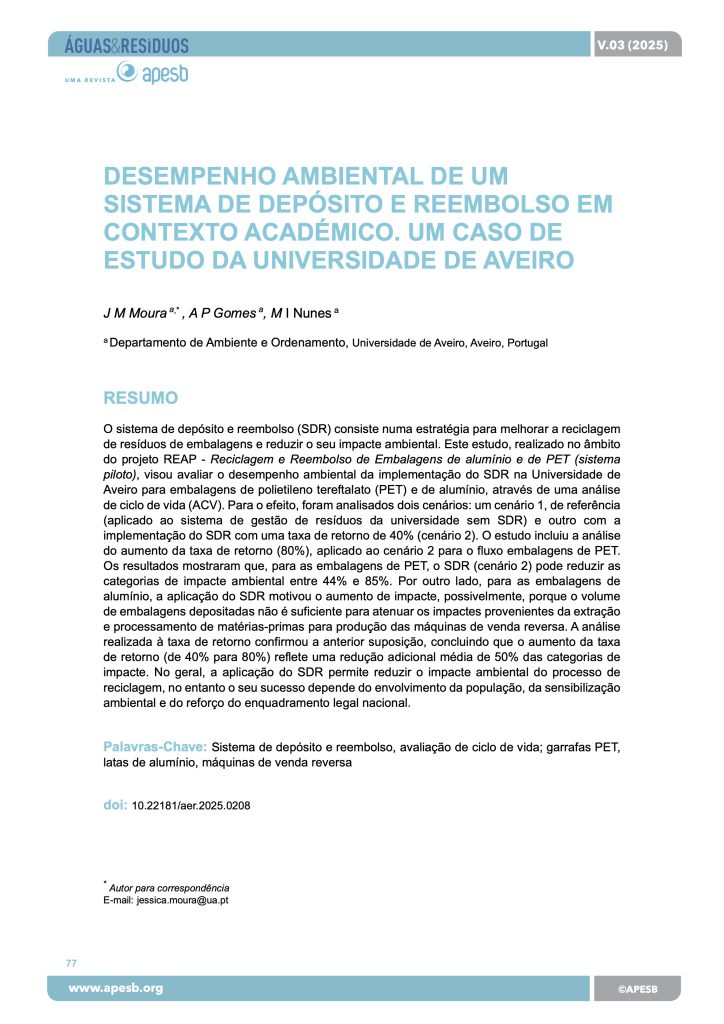 DESEMPENHO AMBIENTAL DE UM SISTEMA DE DEPÓSITO E REEMBOLSO EM CONTEXTO ACADÉMICO. UM CASO DE ESTUDO DA UNIVERSIDADE DE AVEIRO